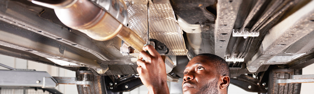 Le contrôle visuel de l’ensemble de la ligne d’échappement : le catalyseur, le collecteur d’échappement, et le silencieux